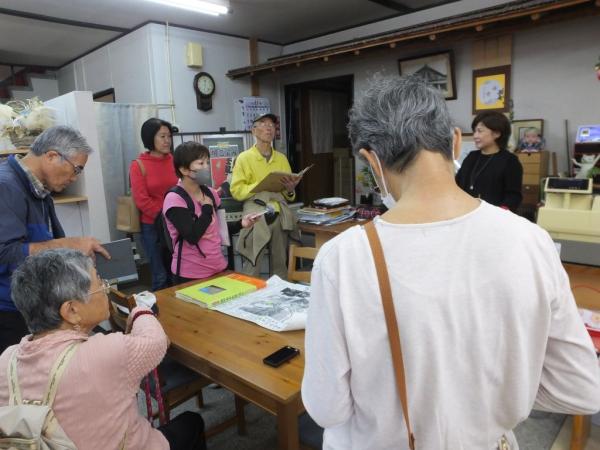 このまち歩きは、今年70歳になった鹿屋市に住む同級生が、その機会に何かを起こそうと企画し、この7月から地域の歴史を感じる史跡や思い出の場所等を巡り始めたもので、これまで鹿屋市内にあった映画館の跡や、昔あった料亭などの跡を散策し、今回も商店街での老舗を巡ったもの。