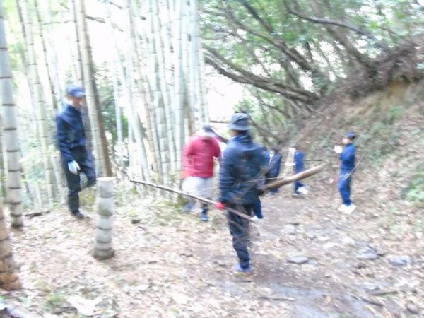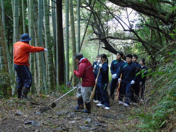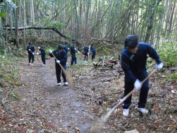 大人は草刈り機などで、本丸などに通じる順路の除草や倒木の除いたりし、高校生ボランティアは、そのあとをきれいにしながら、心地よい汗をかいていた。