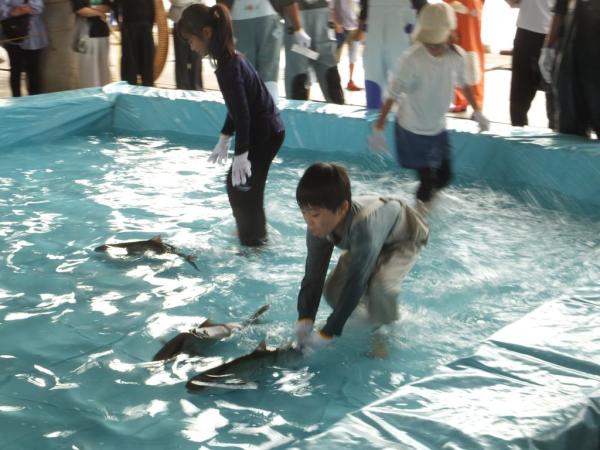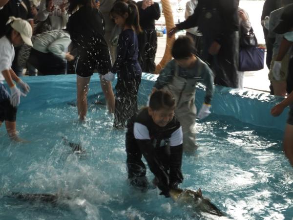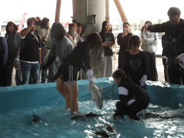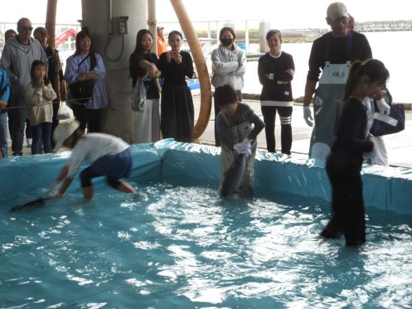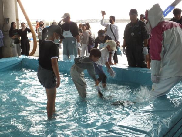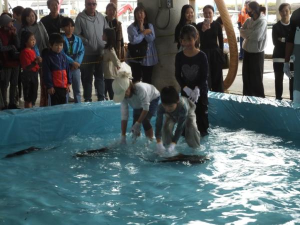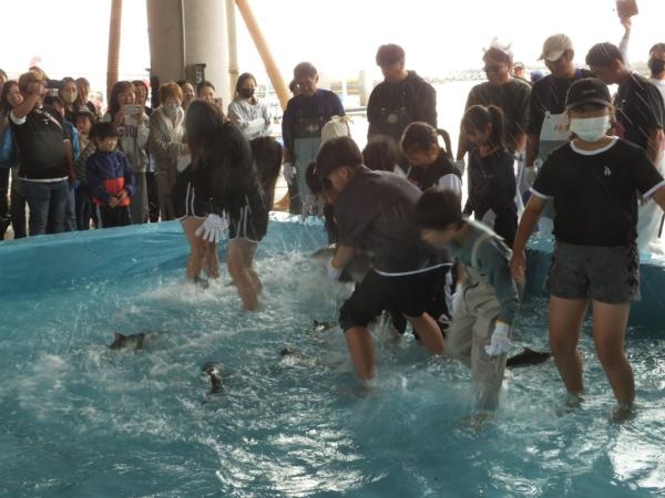 会場では、カンパチつかみ取り、カンパチ重量あてコンテスト、鹿児島大学水産学部大富教授による講演、子ども食堂限定100食握り寿司無償提供。