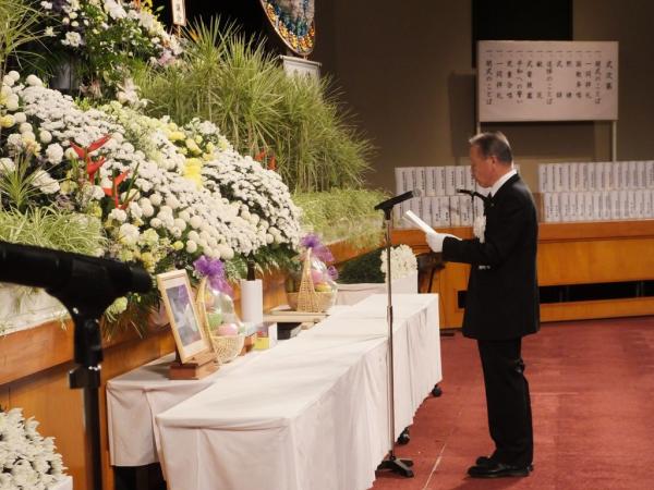 写真=遺族代表の小田部哲哉氏による追悼のことば