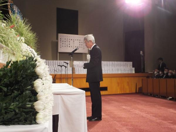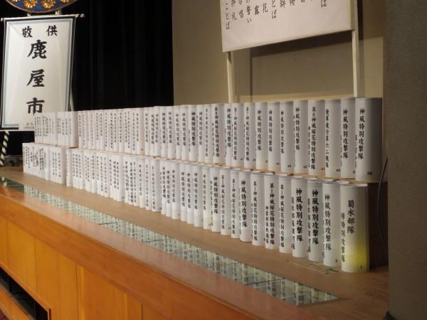 中西茂鹿屋市長による式辞に続いて、花牟禮薫鹿屋市議会議長、大西哲海上自衛隊第1航空群司令、旧鹿屋航空基地特別攻撃隊戦没者遺族代表の小田部哲哉氏による追悼のことばがあった。
