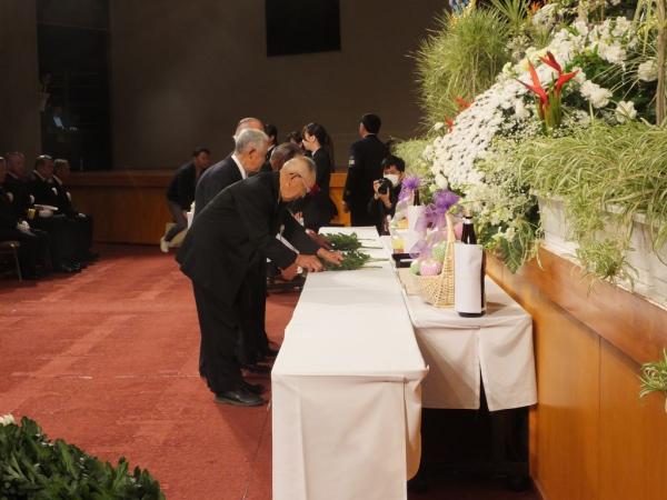 東純義鹿屋市遺族会会長、山下俊朗吾平町遺族代表、前田利雄輝北町遺族代表、河野良幸串良町遺族代表、馬渕勝英鹿屋基地特攻遺族代表、原田洋雄串良基地関係遺族代表や、森山裕衆議院議員ほかの来賓による献花が続いた。