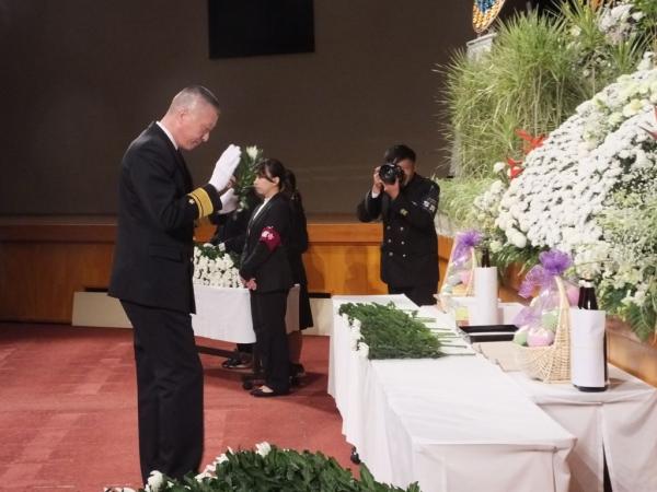 写真=大西哲海上自衛隊第1航空群司令らによる献花