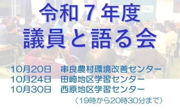 鹿屋市の令和7年度議員と語る会は、10月20日(月)、24日(金)、30日(木)、開催される。