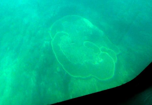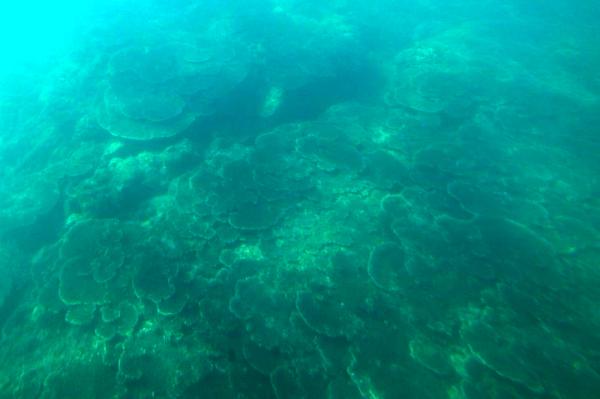 写真=最後の運行でサンゴ礁や熱帯魚に見入る町民ら