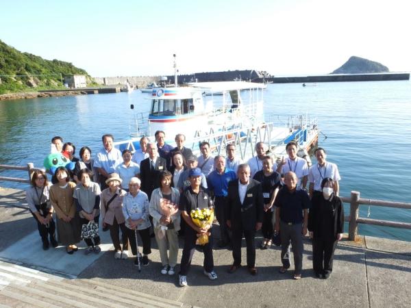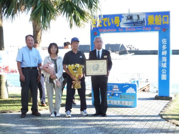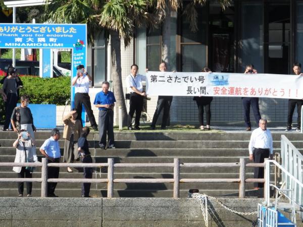 第二さたでい号は、長年にわたり町民や南大隅町を訪れた観光客を楽しませてきましたが、老朽化により、9月30日をもって運航終了となりセレモニーが行われたもの。