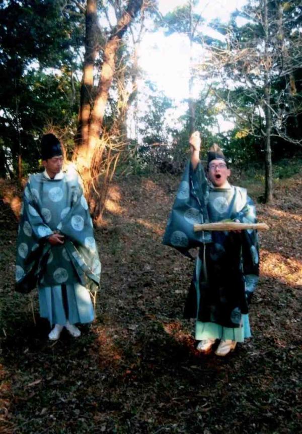 正月3日は、御神幸祭で先シバ、立神、山祭、オノサオ3本、キンハイ2本、弓矢を持って神職、伶人は先シバ(コノサカ)へ移動する。