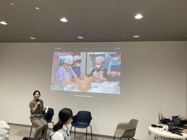 写真=櫛間氏が5/5のお菓子屋さんになろう!企画の動画を解説