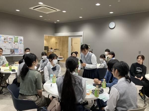 中・高校生と一般の参加者で、4つのグループを作りまちの未来をえがく対話を行った。