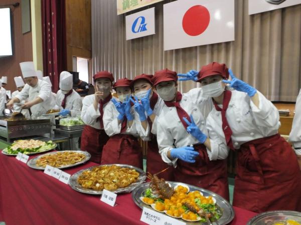 この日は、保護者や家族、教職員らが集まる中で、生徒たちが心を込めて作った料理がずらりと並び、まずは写真撮影。
