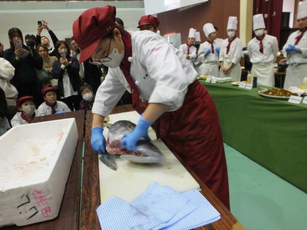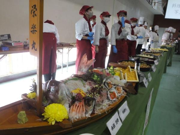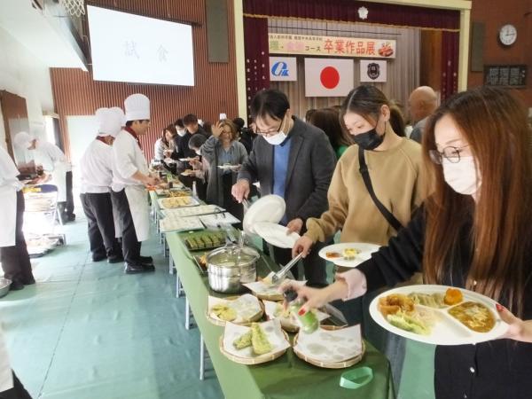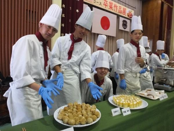 調理師免許取得を目指し入学した生徒たちが、3年問の集大成として、日本料理、西洋料理、中国料理のテーマから1人1品調理。