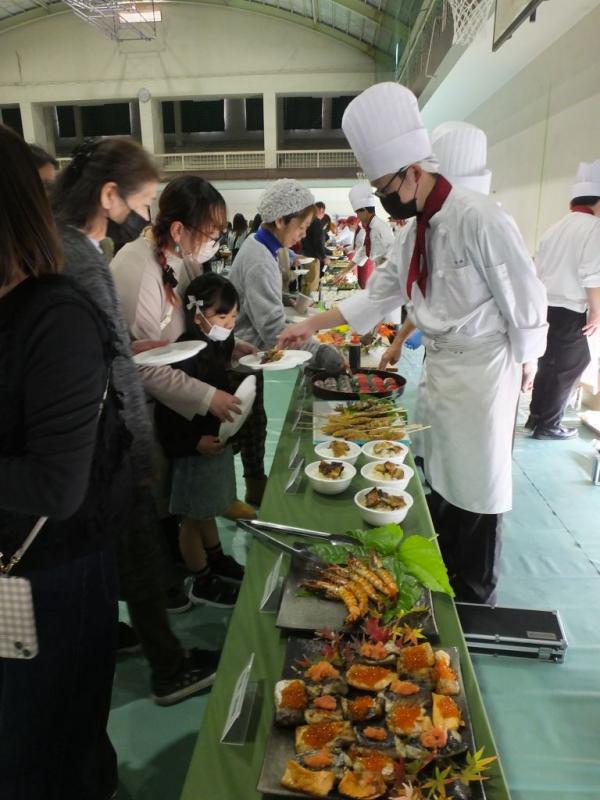調理科の杉之尾主任は「今回、地元企業の協賛をいただいたり、内定をいただいた企業に参加していただいて、また、より美味しくいただいてもらえるようライブキッチンという形で食べていただき、より充実して開催できた。