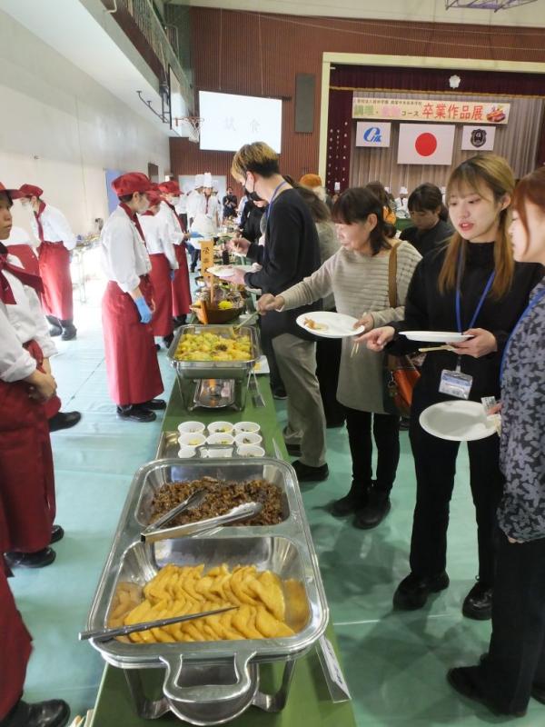 鹿屋中央高等学校 調理・食物コース 卒業作品展が、令和7年12月12日(金)、同校体育館で開催された。