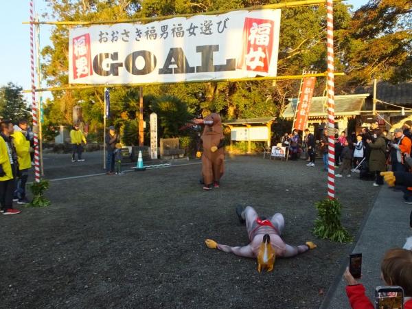 福男一番福は去年、東京世界陸上に出場した今泉堅貴さん、仮装大賞は会場の拍手の大きさで決められ大いに盛り上がった。