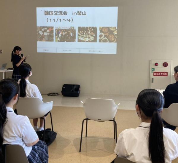 また、韓国のインターアクト生との交流や海岸清掃、ペットボトルキャップの回収などの活動をしていると発表。