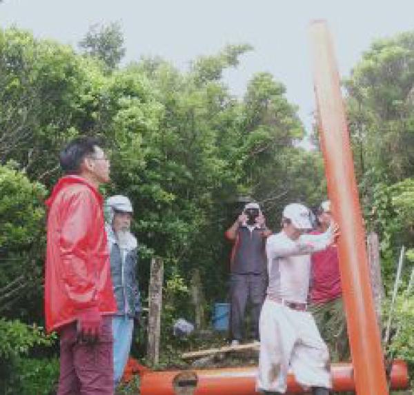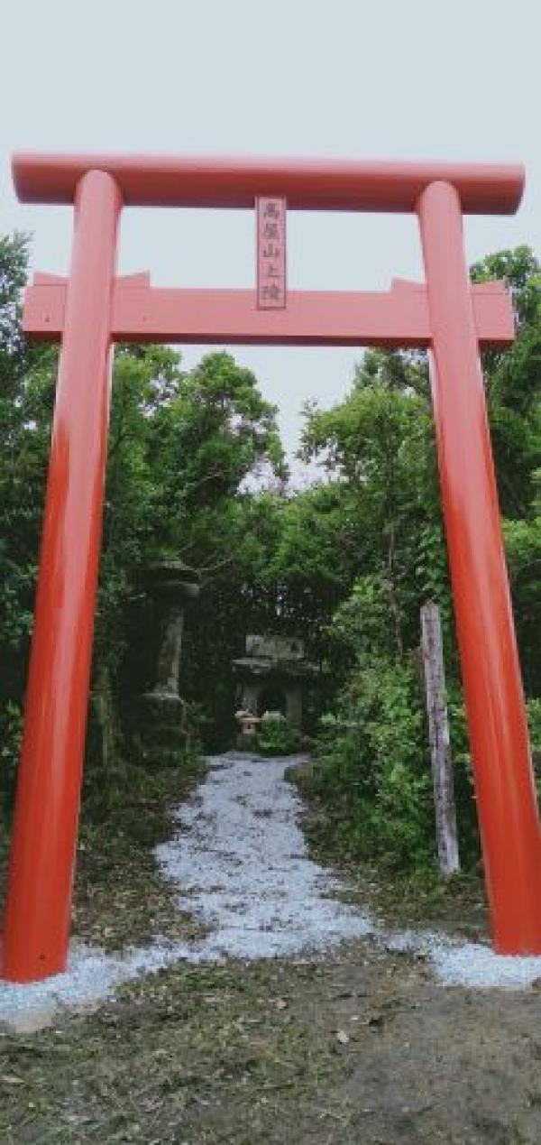 写真=2020年8月 国見山頂の高屋山上陵跡の鳥居を建て替え