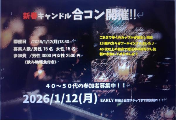 1/12 40~50代の参加者を募集 新春キャンドル合コン