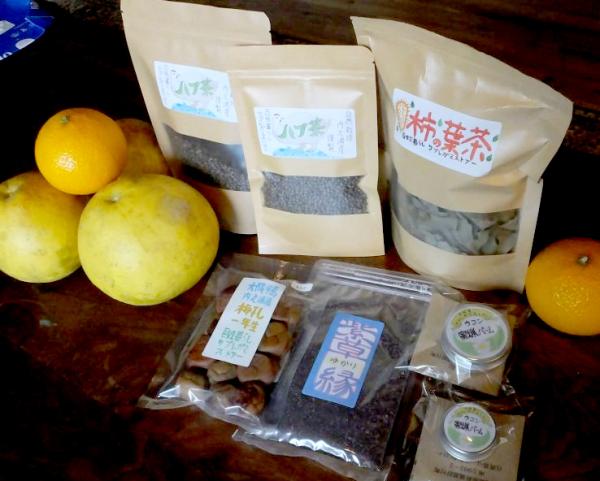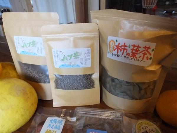 サブレガミストアーでは今、柿の葉茶やハブ茶、紫草[ゆかり]縁、梅干し、ウコン蜜蝋バームやかんきつ類などが販売されている。