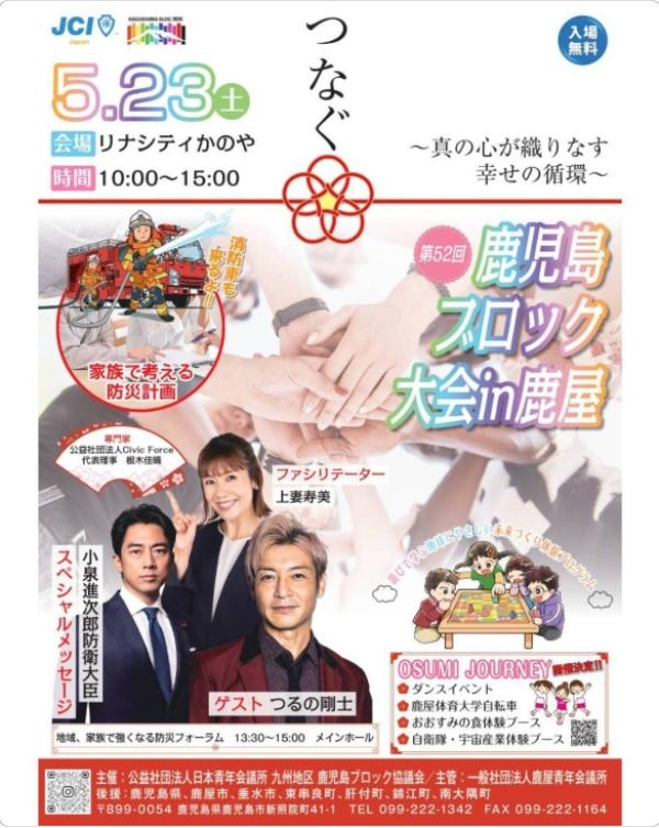 日本青年会議所 第52回鹿児島ブロック大会in鹿屋は、2026年5月23日(土曜日)リナシティかのやで開催される。