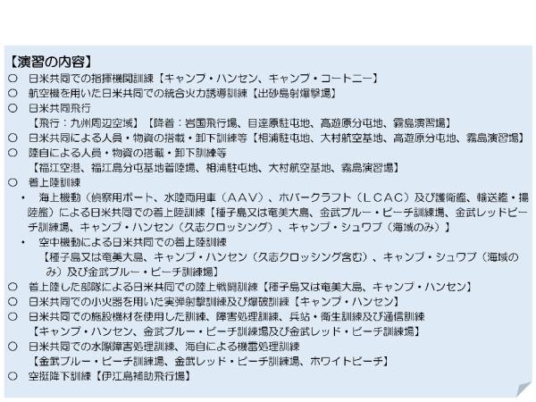 水陸両用作戦に係る行動を日米共同・統合により演練し、相互運用性の向上及び水陸 両用作戦能力の向上を図る。