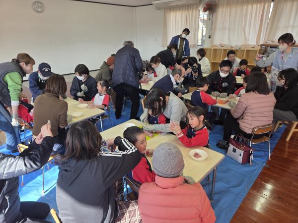 大隅地区翔び魚塾 さばき方教室が、令和8年2月12日、大崎町神領の学校法人三浦学園 大崎幼稚園で開催され、園児らが、ねじめ黄金かんぱちのさばき方や切り身など包丁の使い方を漁師に習い、また志布志産ちりめんとともに試食を行い、地域の魚についての勉強も行った。