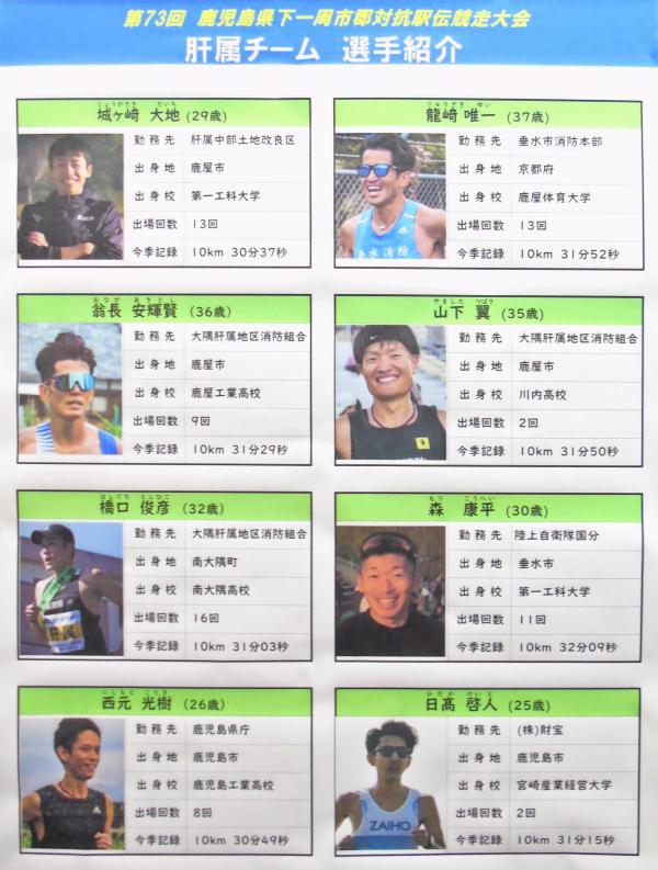 第73回鹿児島県下一周市郡対抗駅伝競走大会は令和8年2月21日、鹿児島市役所前から南さつま市役所までの11区間128.8キロで初日がスタート、姶良が日間優勝を飾った。