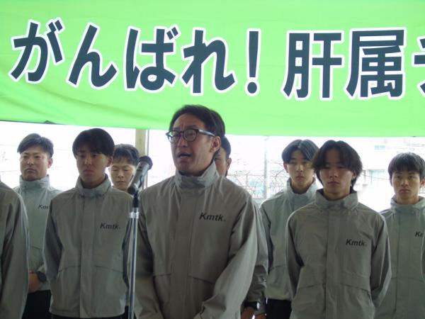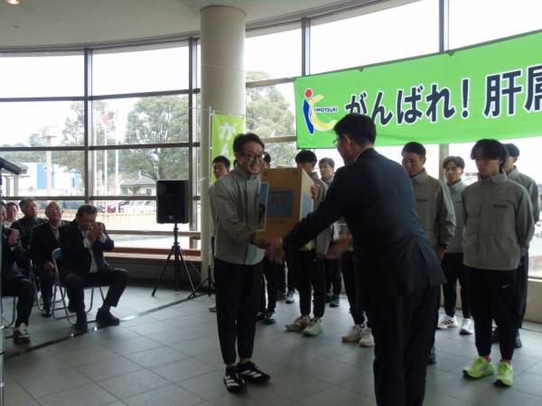 前日の20日には、肝属チームの鹿屋市出発式が、鹿屋市役所1階市民ホールで開催され、選手や監督、コーチらが、郷原拓男市長や関係者らからエールが送られた。