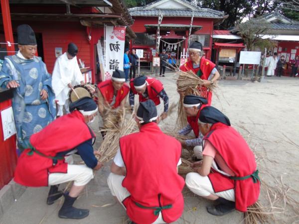 鹿屋市田崎町の七狩長田貫神社(通称田崎神社)で令和8年2月22日、田の豊作を祈願する「お田植え祭」が開催された。