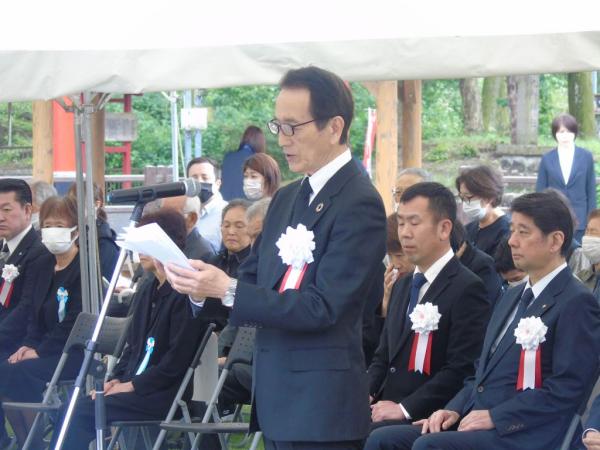 写真=式辞を述べる永野町長