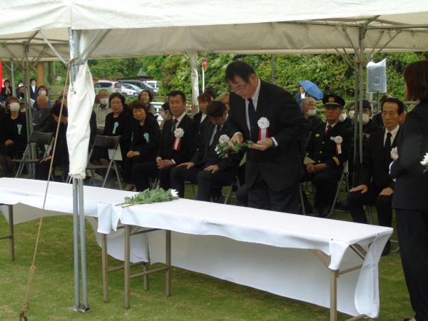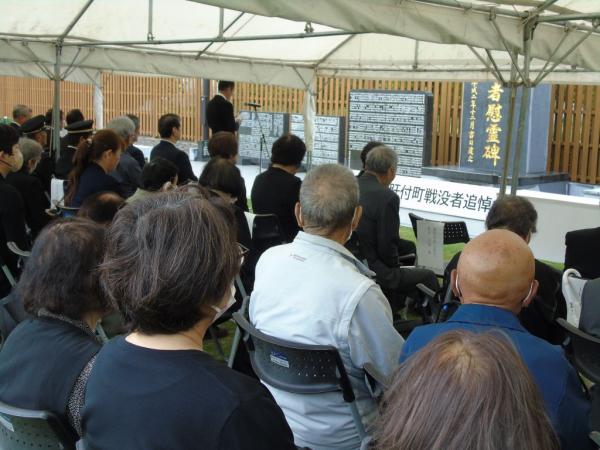 これまで町文化センターで開催されてきたが、今年は落成式を済ませたあとの真新しい平和祈念公園で開催されたもの。