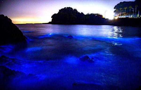 海底の夜光虫たちが寒さ和らぎ目を覚ます神秘的な錦江湾
