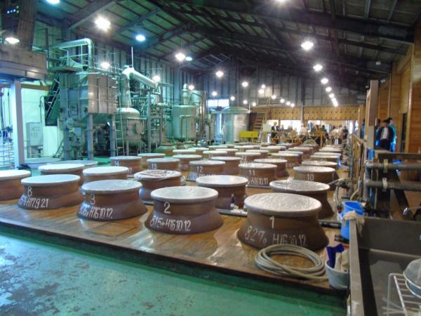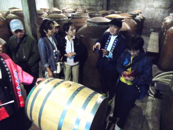また貯蔵蔵では、杜氏の西薗博文さんが、「長いもので20年が貯蔵してあります」など説明、ウイスキー樽に貯蔵された焼酎についてなど質問に答えていた。