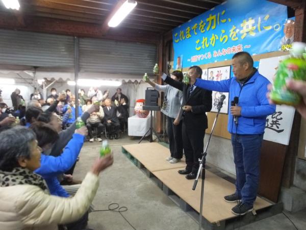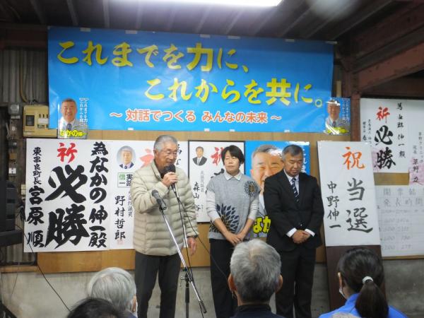 新西後援会長がお礼のあいさつを述べ、来賓を代表して東町長があいさつした。