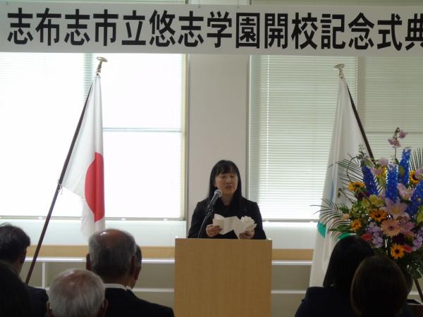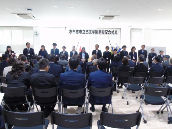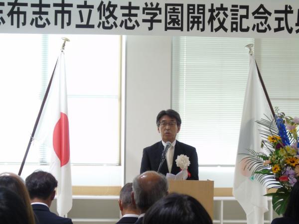 この日、式典では下平晴行市長が、「本学園の誕生は、市にとって大きな喜びであるとともに、これからの教育の在り方を示す大きな一歩でもあります。
