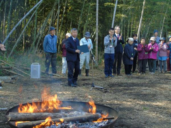 田中氏が、竹の資源化モデル事業への思いや、宮園地区住民のノーと言わないその土壌、これまで関わってきたすべての人たち一人ひとり、各団体などに対して、それぞれの思いや感謝の気持ちを伝えながら受賞者あいさつを行った。