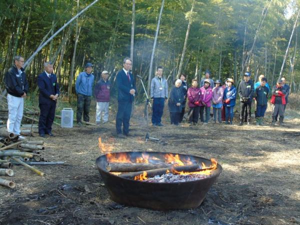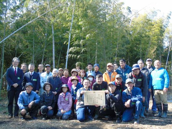 「ふるさとづくり大賞明日への希望賞(総務大臣賞)」表彰状授与式が、令和8年2月12日、大崎町永吉の宮園集落内竹林整備簡所で開催され、大崎町政策研究員の田中力氏へ、中野伸一町長から表彰状が手渡された。