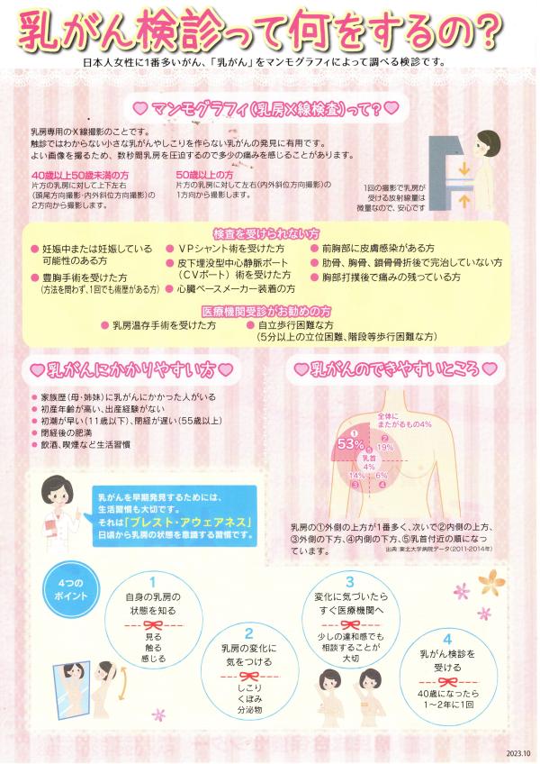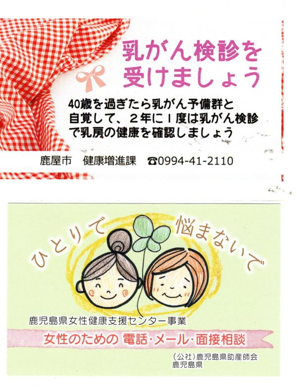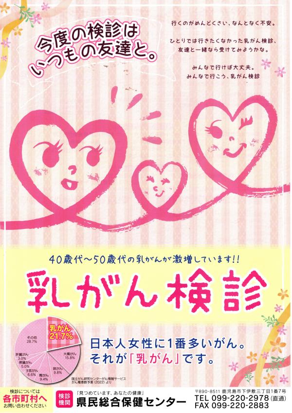 鹿児島県では、毎年10月をピンクリボン月間と定め、乳がんに関する正しい知識の普及啓発を実施している。