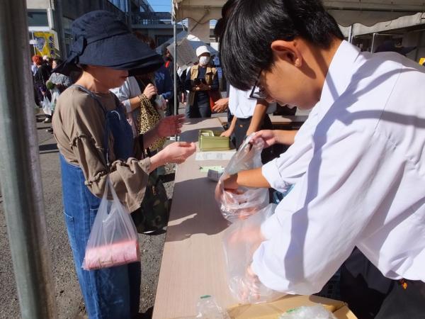 生徒たちが毎日育てている野菜やお肉が販売され、多くの市民が訪れ人気となっている。