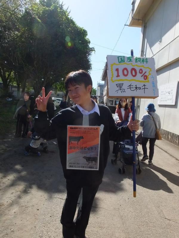 生徒たちが育てた農畜産物の中でも、創立130周年を記念した今年の目玉は、Meat&Meetプロジェクトforおおすみとして国産のエサだけを与えて育てた純国産黒毛和牛の肉なども販売された。