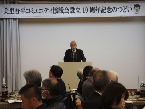 美里吾平コミュニティ協議会設立10周年記念のつどいが、令和7年11月19日、湯遊ランドあいらで開催され、コミュニティ協議会を構成し活動する各部会、各団体、関係者らが集まり、10年の歩みを振り返り、今後の活動に弾みをつけた。