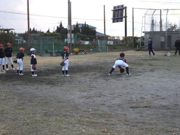 西部ガス古川朋樹選手の野球教室が、令和7年12月17日、鹿屋市立小中一貫校花岡学園運動場で行われ、同学園野球部の商学部、中学部選手が、野手のフィールディングやバッティングの指導を受けた。