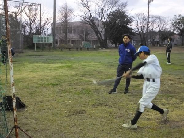 この日は、学園中学部の田所皇亮君、穂満椋介君、棈松菊次郎君の3人と小学部児童の選手が、シートノックやトスバッティングなどで、それぞれ体の動かし方や球の捉え方などの受け、田所君はけん制について「ショートが仕掛けたとき、ランナーが動きやすい状態を作って」などの助言を受けていた。