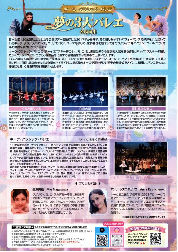ウクライナ・キーウ市立アカデミー・オペラ・バレエ青少年劇場を母体とするバレエ団「キーウ・クラシック・バレエ」による来日公演。