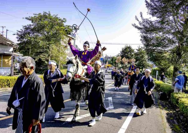 900年以上の伝統を誇る肝付町新富の四十九所神社の流鏑馬(やぶさめ)が、令和7年10月19日、同神社前の宮之馬場で開催された。
